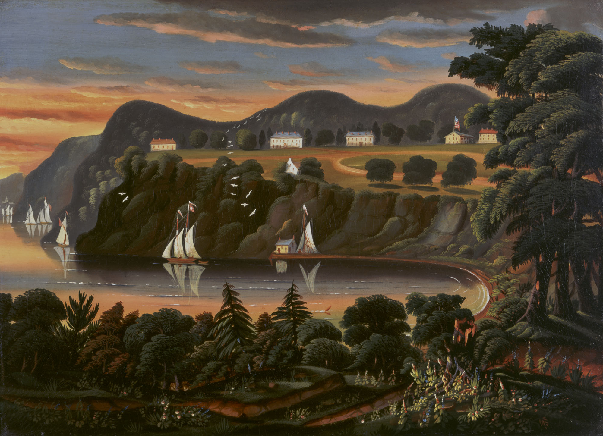 The original work for this print was painted in the 1850s by the artist Thomas Chambers. The tranquil scene shows sailboats on the Hudson River near West Point.
